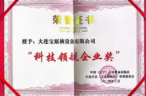 3月8日,大连宝原核设备股份有限公司被大连自贸区授予“2023年度科技领航企业奖”荣誉称号。这份荣誉不仅是对大连宝原2023年度工作的肯定和表彰,更是对大连宝原下一步工作的鞭策,未来大连宝原将继续努力,不忘初心,筑梦前行。